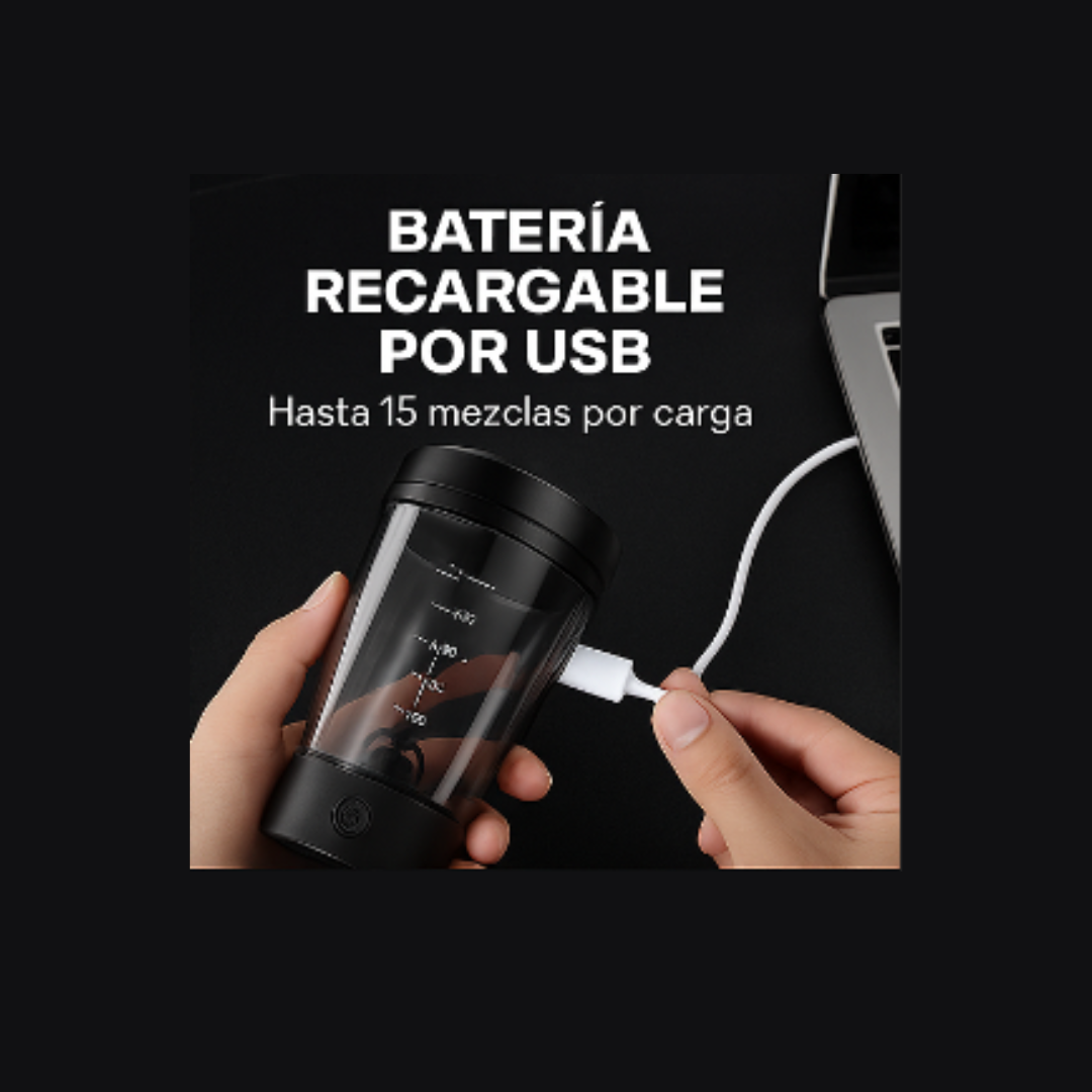 Gracias a su batería tan duradera, te permite hacer hasta 15 batidos por carga. Su carga rápida y su cargador de tipo USB-C te permiten cargar tu shaker de manera cómoda y desde varios dispositivos.
